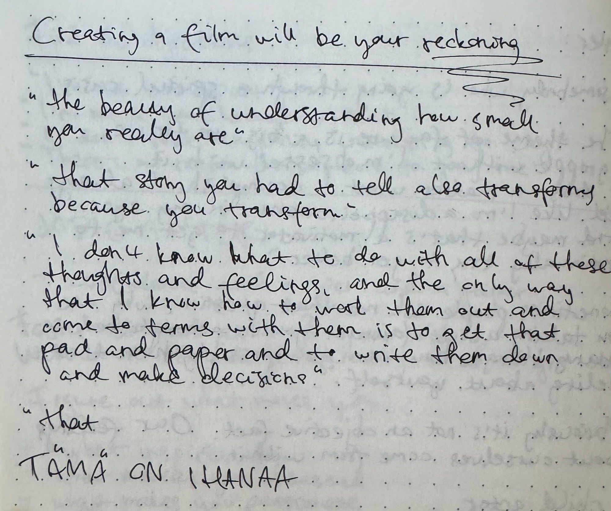 Mutta koska niin ei voi tehdä, päädyin vain kirjoittamaan muistikirjaani näin: